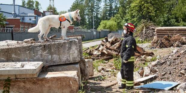 Например, площадка, где поисковые собаки тренируются искать людей под завалами.Юлия дает сигнал, и Даня начинает искать. Он обнюхивает каждый уголок, иногда останавливается и прислушивается. Проходит несколько минут, и человек найден. После выполненной работы собаке полагается вознаграждение — какое-нибудь угощение.